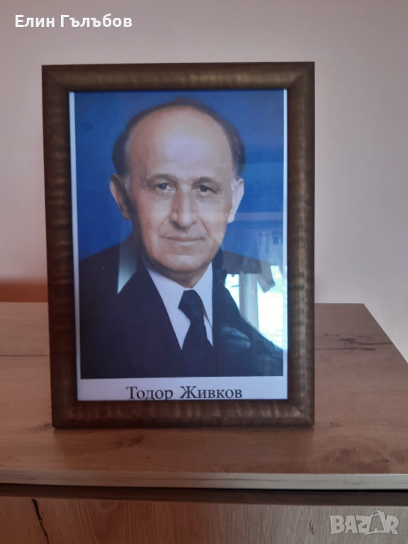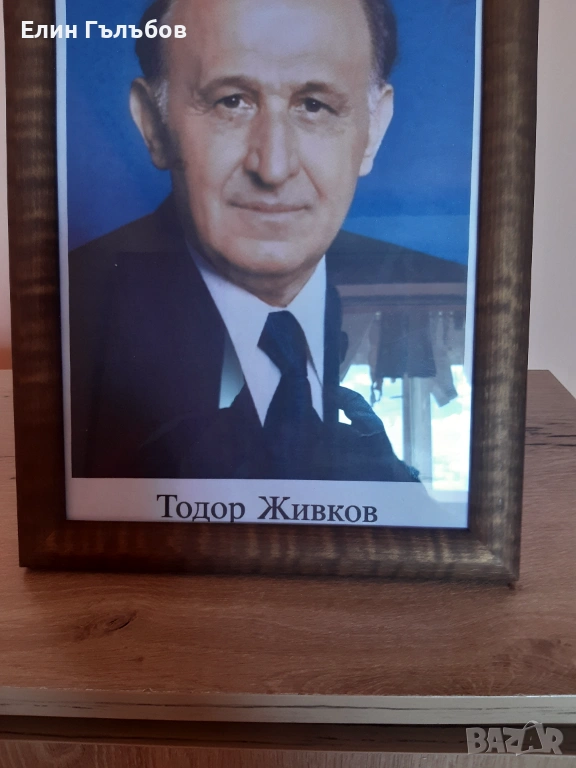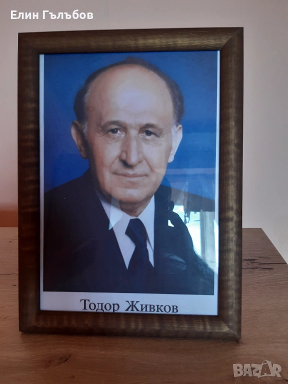 Портрет на Тодор Живков, 25/35 см. в дървена рамка → Обява 54157865