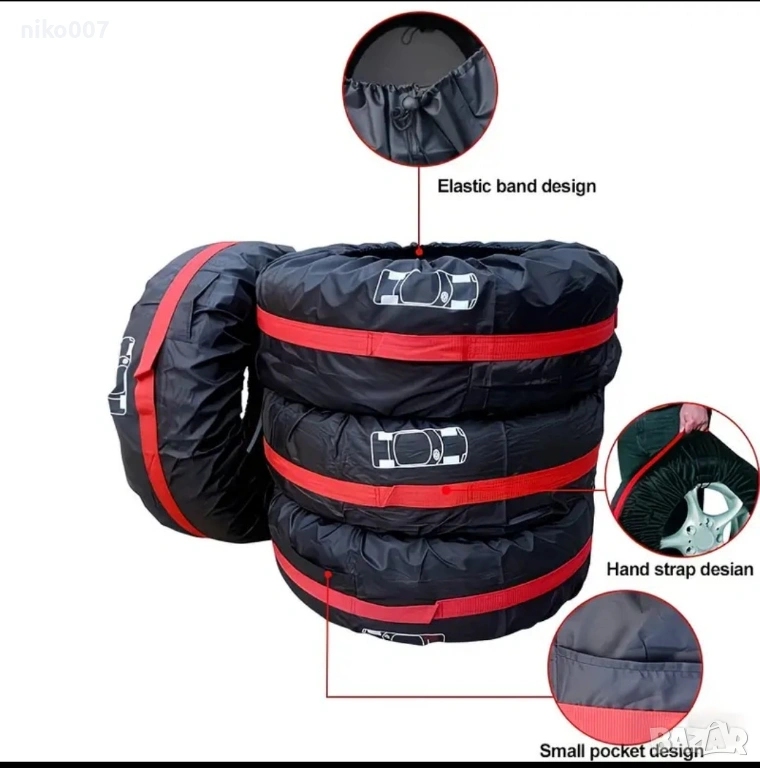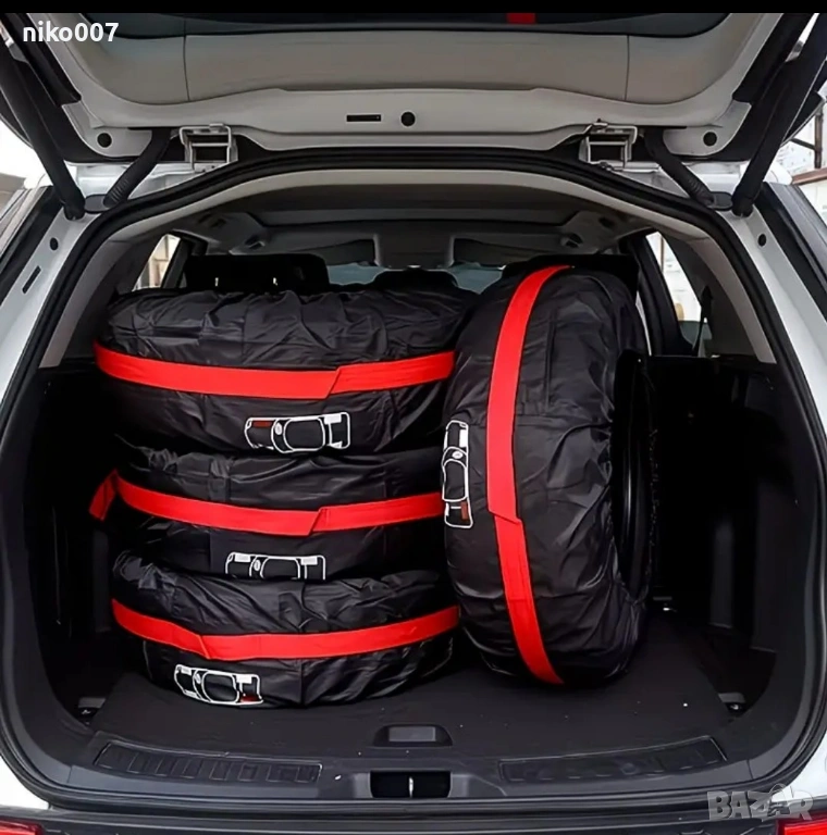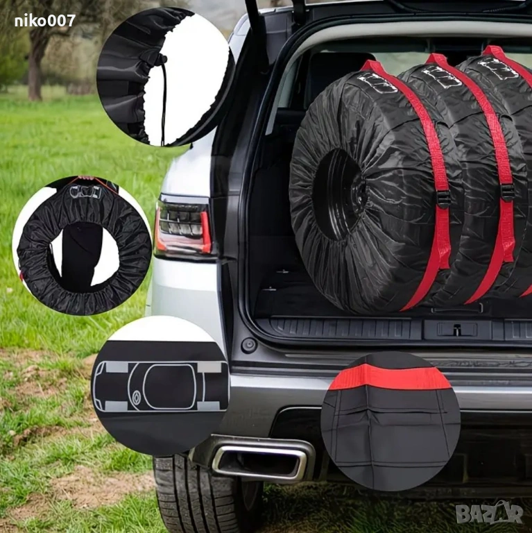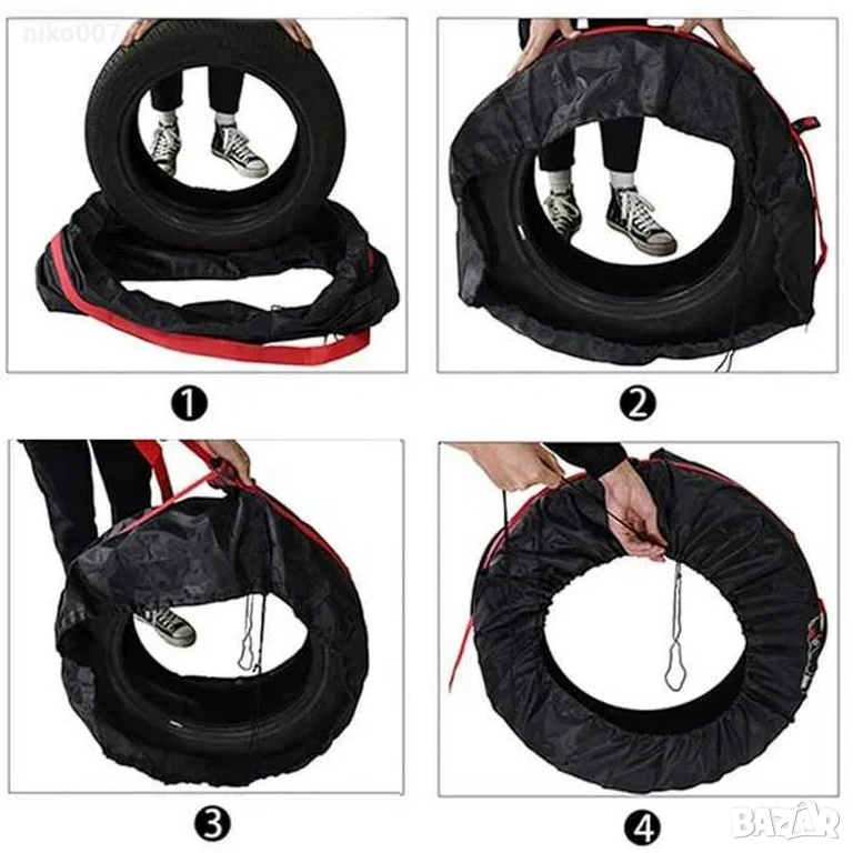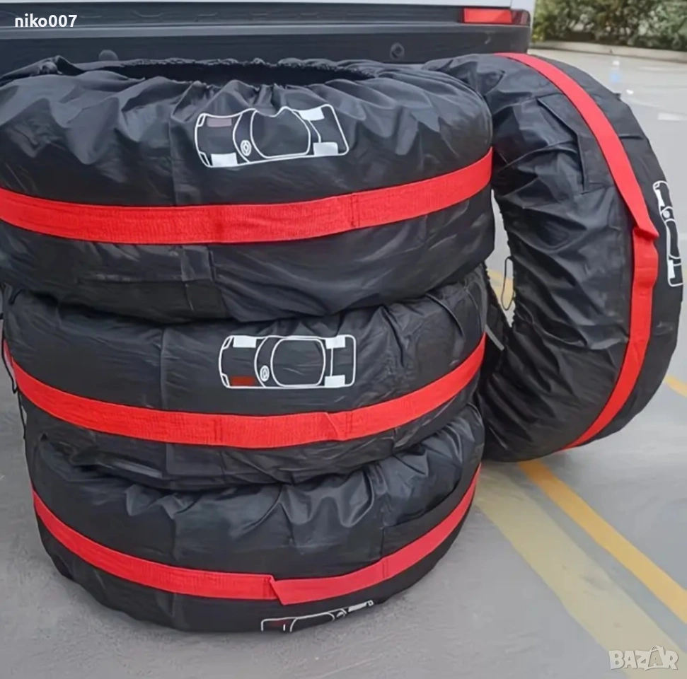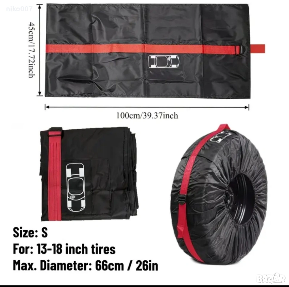 Топ цена-Универсални калъфи за съхранение на летни и зимни гуми от 13 до 17 цола.Размерите се виждат на една от снимките.