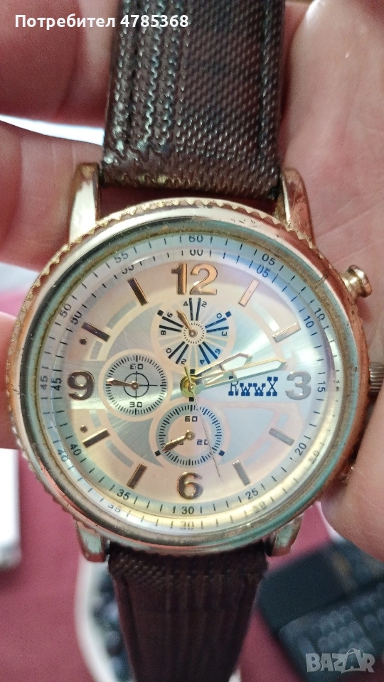 Ръчни часовници, съвсем кратко употребявани. Снимка 1 - часовника с металната верижка, марка ТСМ, с датчик, секундарник, цвят сребро, изключително точен, отлично състояние, херметик до сто метра дълбочина. Унисекс. Цена 50 евро.+ Снимка 2- часовника с кожена каишка,марка RWWX,със секундарник, цвят злато, с допълнителни други измервания в/у циферблата. Унисекс. Работи съвсем точно. Изключително стилен и удобен за носене. Изпращам чрез "Спиди".Цена 50 евро.+ Снимка 3- НОВ Дамски часовник, марка "Charles Delon", със секундарник, херметически, напълно точен, с една батерия, цвят сребро, каишка естествена кожа. Изпращам чрез "Спиди". Цена 50 евро. + Мъжки часовник "Ракета". Цена 15 евро + Антикварен Джобен часовник на минимум 100 години, неработещ, възможна поправка. Изпращам чрез "Спиди". Цена 50 евро.+ Силиконови каишки, изключително удобни, цвят черен, не се разтягат и късат.Цена 5 евро за брой. + Два броя стенни часовника, с по една батерия, работят точно, изпращам чрез "Спиди". Цена единична пет евро. Тел. 0878767144