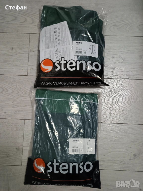 Чисто ново работно облекло - комплект състоящ се от горнище и долнище полу гащеризон на марката stenso asimo. Останали са ми два комплекта: Комплект 56ти номер и комплект 54ти долнище и 52ри горнище. Цената е 20евро на комплект.