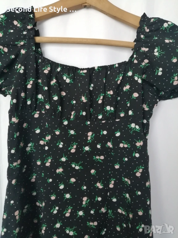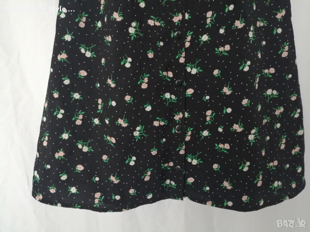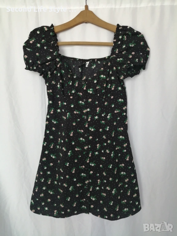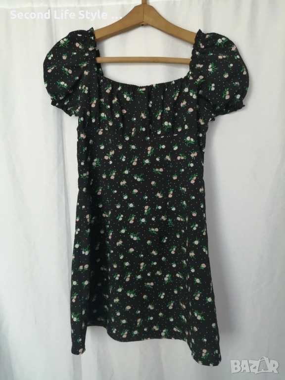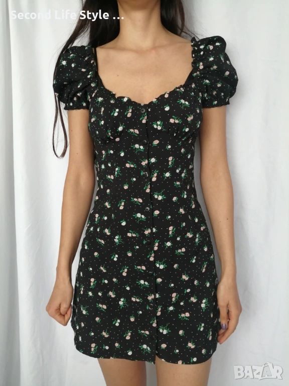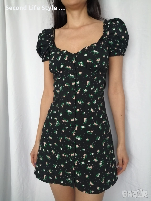 H&M дамска къса рокля с буфан ръкави, копчета отпред и принт цветя и точки р-р S (EU 36)