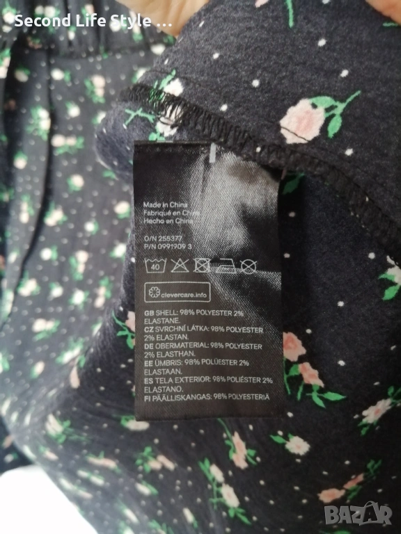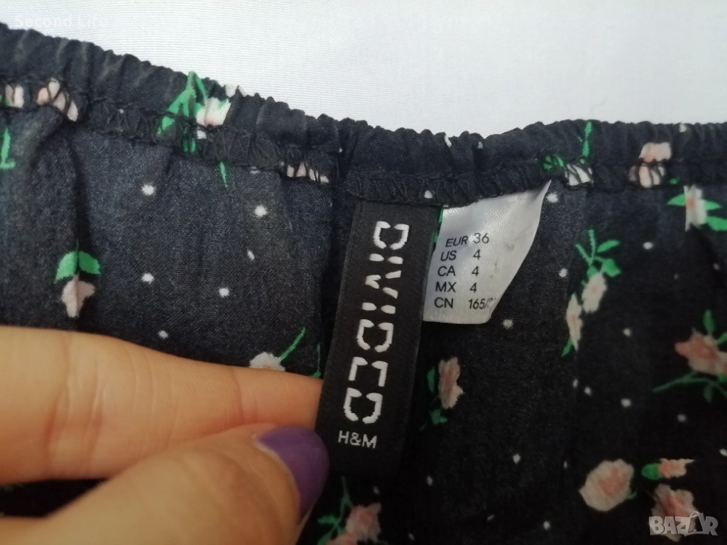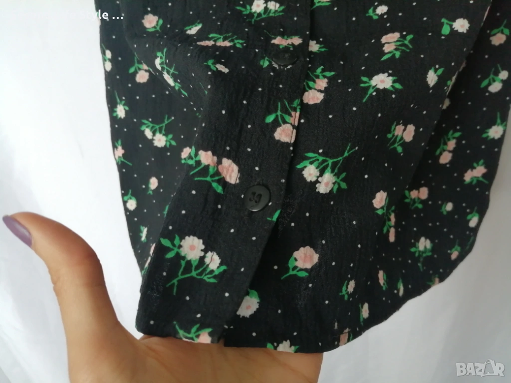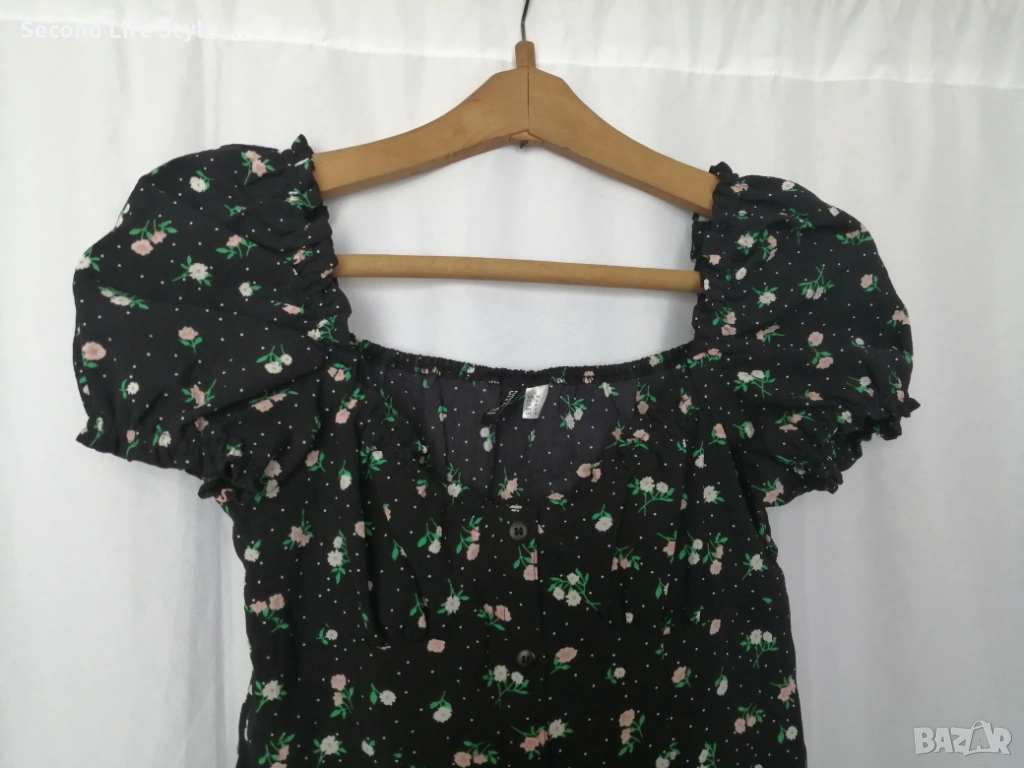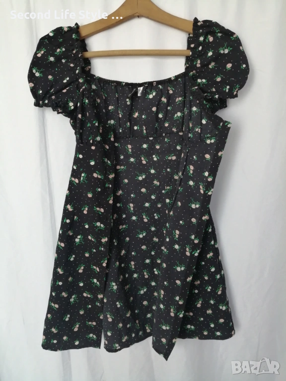 H&M дамска къса рокля с буфан ръкави, копчета отпред и принт цветя и точки р-р S (EU 36)
