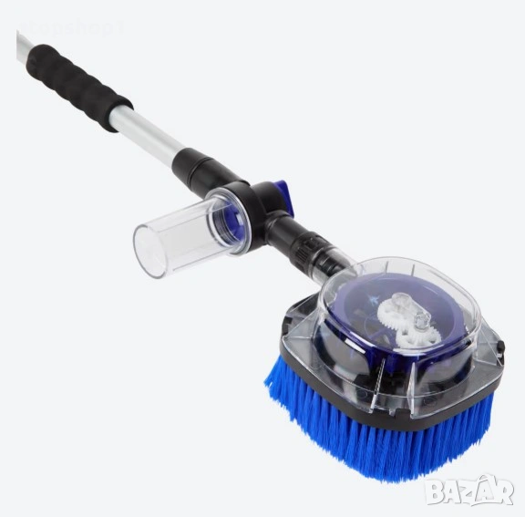 Почистете лесно колата си с този практичен комплект четки. Благодарение на три различни четки и изключително дългата дръжка, можете да достигнете дори до труднодостъпни места. Просто го свържете към градинския си маркуч и сте готови. Идеален за джанти, прозорци и боядисани повърхности.