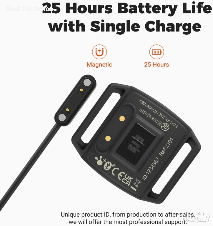 Акумулаторна батерия: Гривната за пулсомер се предлага с акумулаторна батерия, която ви позволява да тренирате до 25+ часа с едно зареждане.