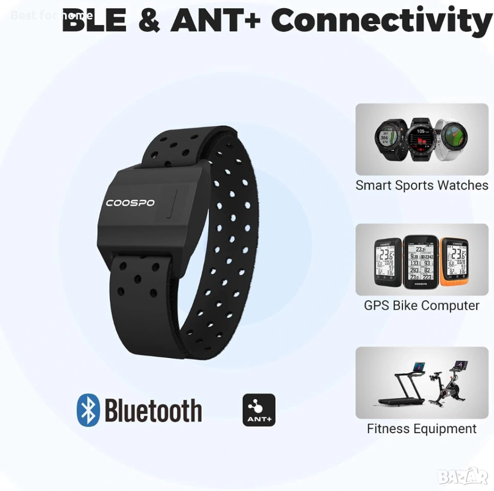 COOSPO Пулсомери за ръкав Оптичен сензор за пулс Bluetooth 4.0 ANT+ Съвместим с iFit Polar Strava Wahoo Garmin Peloton