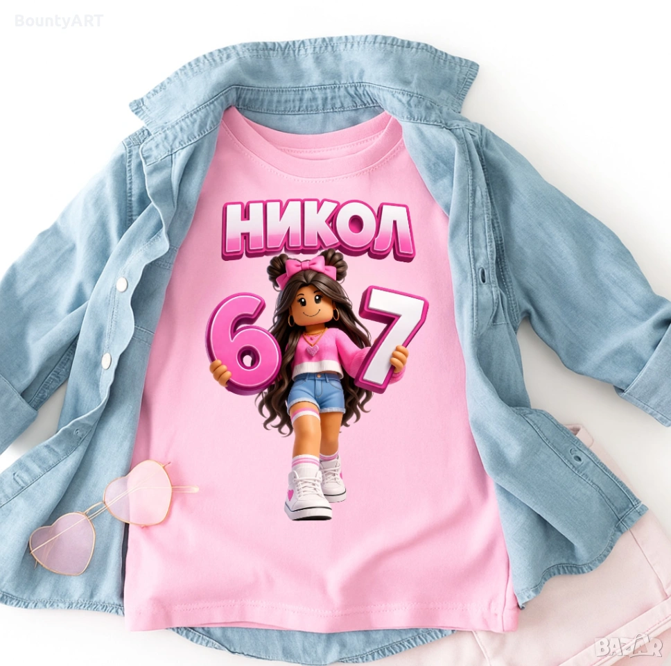 Персонализирана тениска SIX SEVEN/ Шест/Седем 67 Роблокс момиче