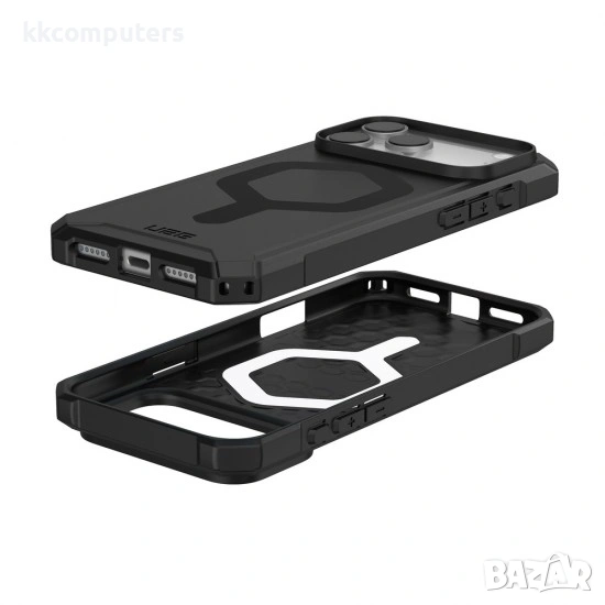 - Оригиналният кейс UAG Essential Armor MagSafe за Apple iPhone 17 Pro Max (6.9") е защитен калъф с интегрирана MagSafe съвместимост, съчетаващ издръжлив корпус и тънък профил, който осигурява надеждна защита при падания и ежедневни удари, но без да утежнява телефона. Подсилените ъгли и повдигнатите бордове защитават камерата и дисплея, а текстурираната повърхност подобрява захвата, като в същото време запазва лесен достъп до всички бутони и портове, в класически черен цвят.