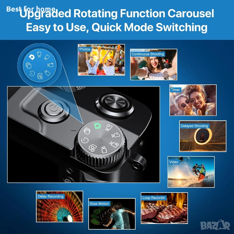 【Режим на снимане - Бързо превключване】 Дискът за функции на снимане на този цифров фотоапарат е проектиран за лесно и удобно превключване между различни режими на снимане - Снимка, Непрекъснато снимане, Снимане с време, Снимане с ускорен кадър; Видеозапис, Цикличен запис, Запис на забавен каданс, Запис с ускорен кадър. Ние предлагаме 1 година следпродажбено консултантско обслужване за нашите продукти, за да гарантираме приятно пазаруване.