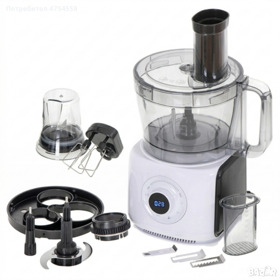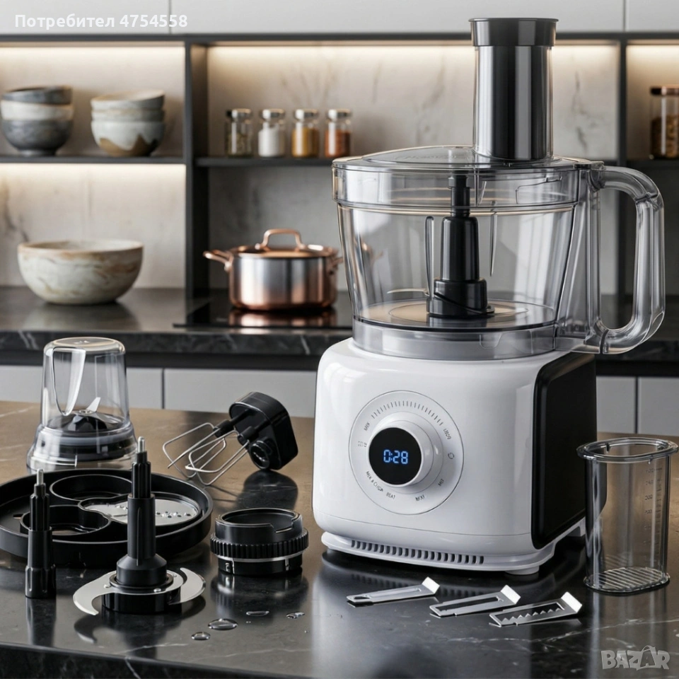 Кухненски робот 12 в 1 с LCD дисплей, 1000W – Смесва, реже, мели и прави смути за секунди