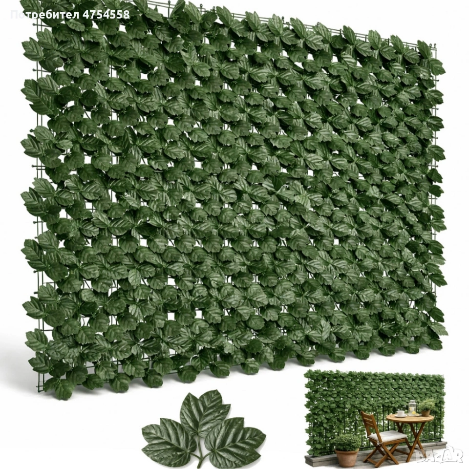 Изкуствен жив плет от бръшлян 1.5 x 3 м – UV устойчив, плътна зелена стена за балкон и ограда