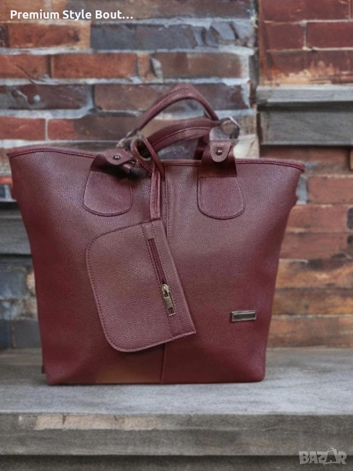 Дамска кожена чанта с аксесоар - портмоне