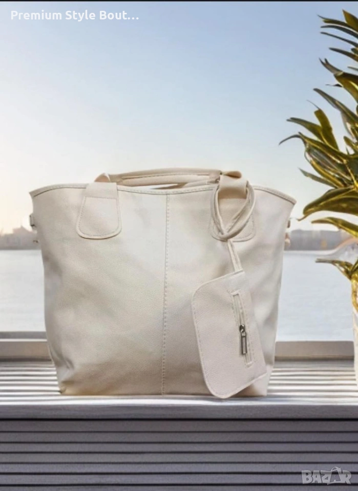 Дамска кожена чанта с аксесоар - портмоне