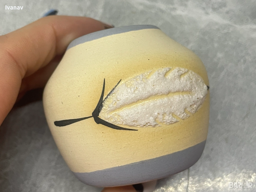 Mалка керамична ваза, ръчно рисувана Blue Feather, снимка 1 - Антикварни и старинни предмети - 54158825 Mалка керамична ваза, ръчно рисувана Blue Feather, снимка 2 - Антикварни и старинни предмети - 54158825 Mалка керамична ваза, ръчно рисувана Blue Feather, снимка 3 - Антикварни и старинни предмети - 54158825 Mалка керамична ваза, ръчно рисувана Blue Feather, снимка 4 - Антикварни и старинни предмети - 54158825 Mалка керамична ваза, ръчно рисувана Blue Feather, снимка 5 - Антикварни и старинни предмети - 54158825 1/5