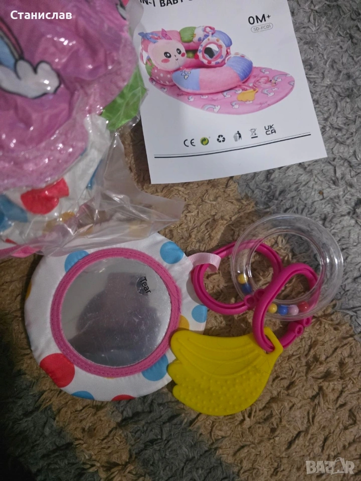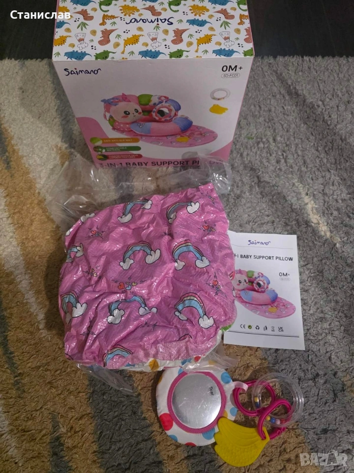 3 в 1 бебешка постелка за коремче и възглавница за сядане, играчки за новородени 0, 1, 2, 3, 4, 5, 6 месеца, розова сензорна постелка за игра с гъсеница, огледало 0-6, 3-6, 12 месеца Нова не разопакована.