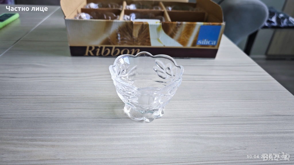 Стъклена купичка с изящен дизайн, подходяща за сервиране на десерти или лакомства. Тази красива купичка е изработена от висококачествено стъкло и ще добави елегантен акцент към всяка трапеза