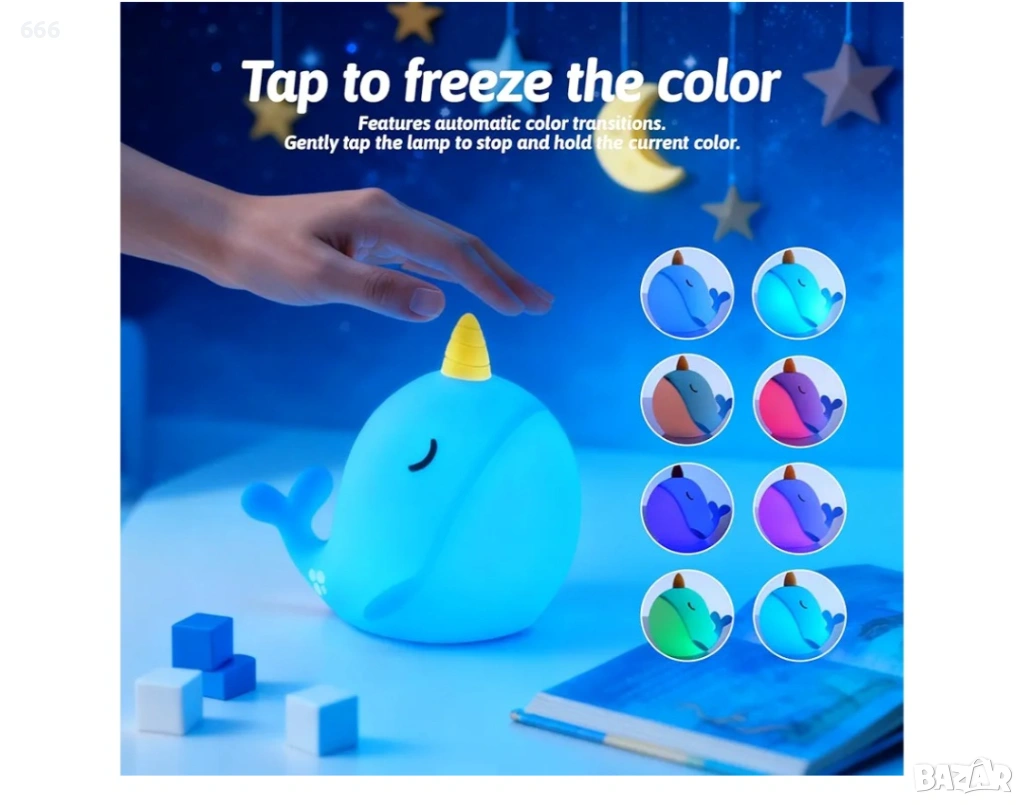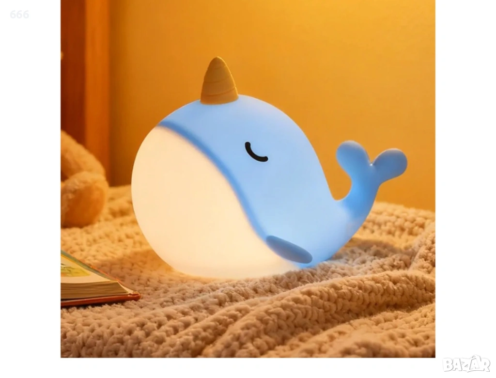 【7 режима за промяна на цвета и управление с докосване】- Просто докоснете сладката нощна лампа с нарвал, за да превключвате между 7 живи цвята или топла бяла светлина! Създайте мечтателна и успокояваща атмосфера във всяка стая - идеална като визуално успокояващо средство, лампа за настроение за тийнейджъри или декоративно акцентно осветление. Меката светлина е приятна за очите и е идеална за хранене, четене или релаксация през нощта.