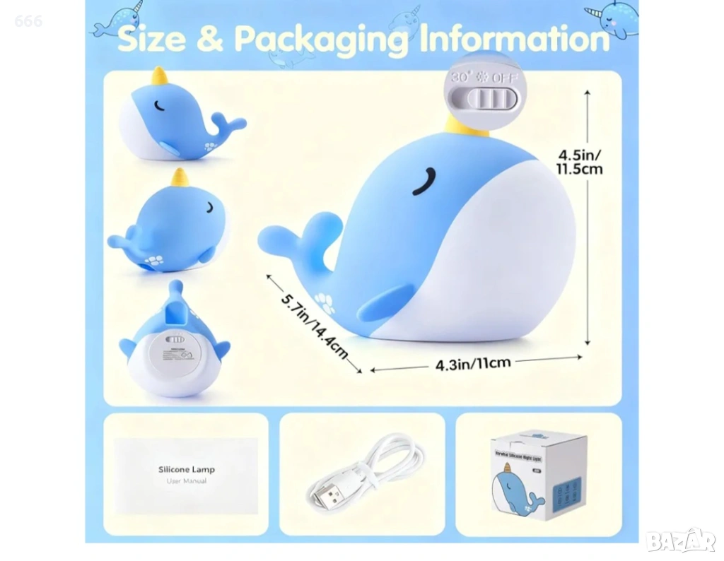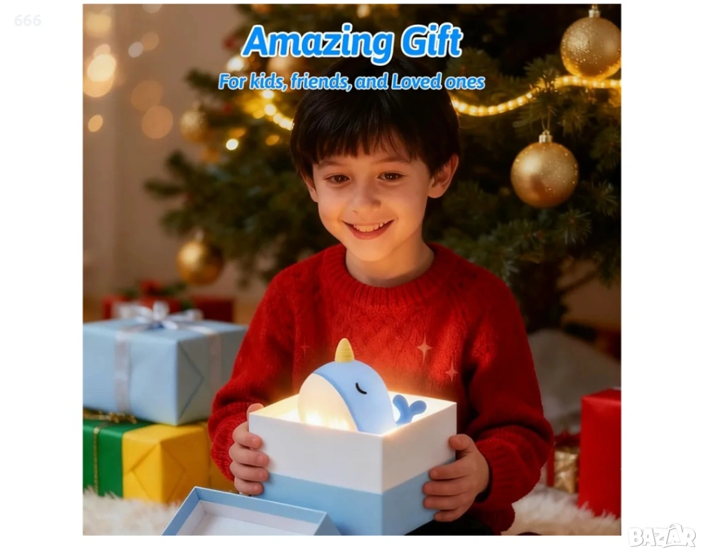 【Перфектен подарък】- Тази очарователна лампичка във формата на нарвал е запомнящ се и практичен подарък за рождени дни, празници, рождени дни или Свети Валентин. Очарователният ѝ дизайн и множеството ѝ функции са подходящи както за родителите. Независимо дали се използва като нощна лампа, играчка или декорация, това е подарък, който е едновременно забавен и трогателен.