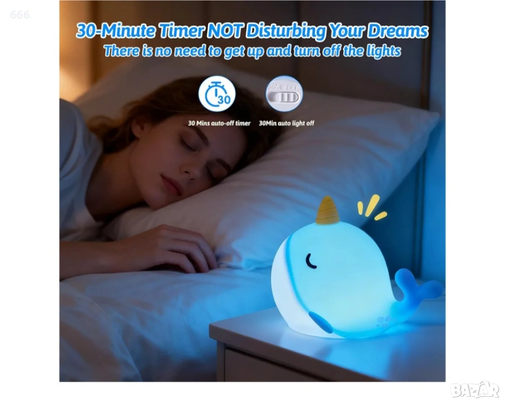 【30-минутен таймер за автоматично изключване за спокоен сън】- Осигурете непрекъсната почивка на вашето мъниче с опции за таймер, след които светлината се изключва автоматично след 30 минути. Тази функция помага на бебетата и малките деца да заспят безопасно и комфортно, като същевременно пести енергия. Чудесна е като лампа преди лягане за детски стаи.