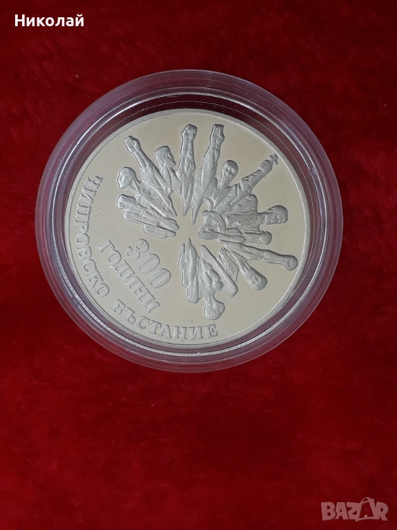 нециркулирала соц монета от 5 лева 1988г. Чипровско въстание - назъбен гурт.