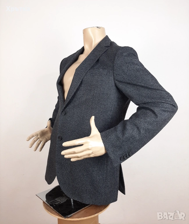 Материята е 100% фина вълна, изтъкана със специфична плетена структура, това придава на сакото динамичен, модерен вид и отлична терморегулация, като същевременно го прави по-еластично и устойчиво на мачкане.