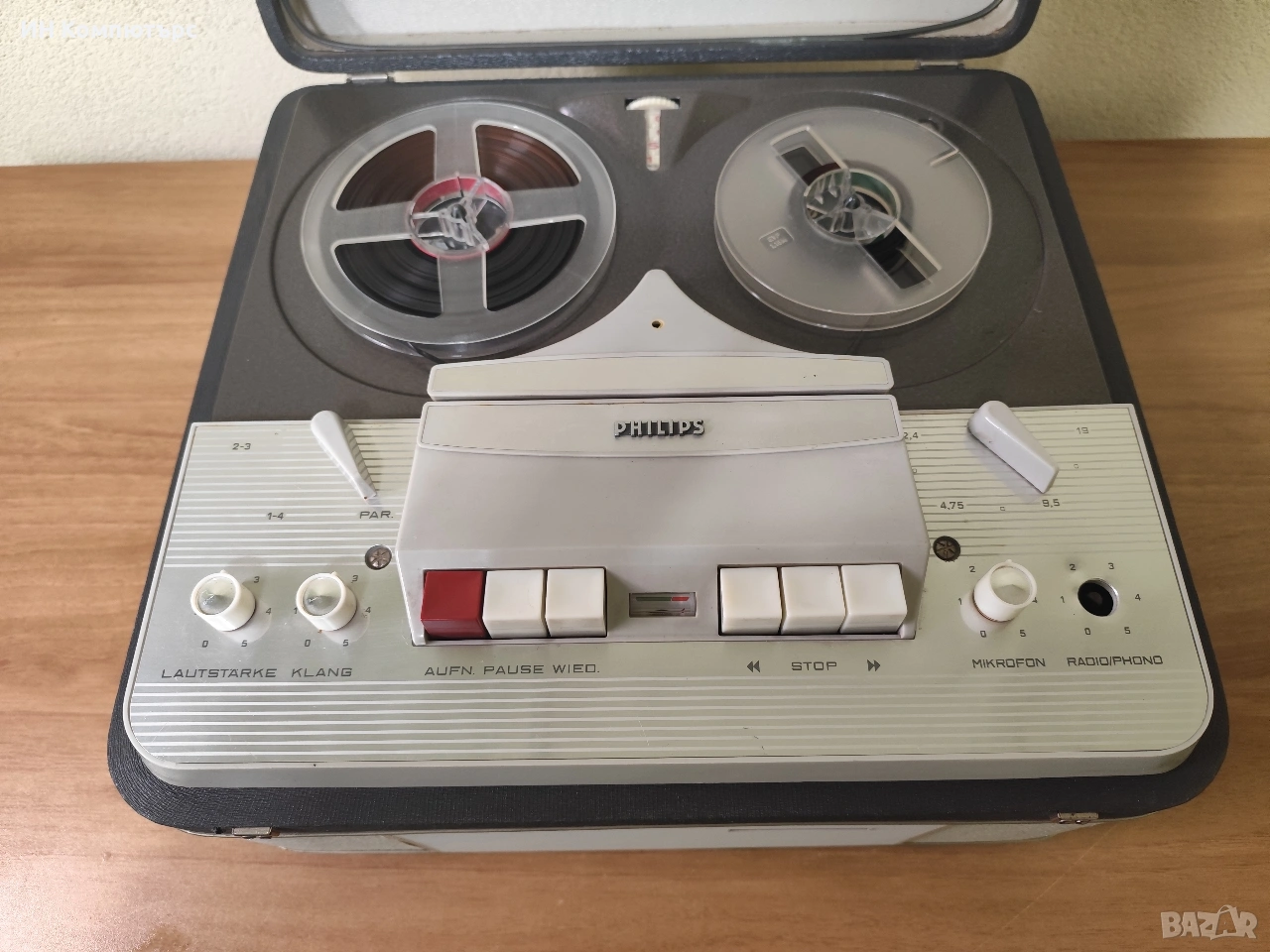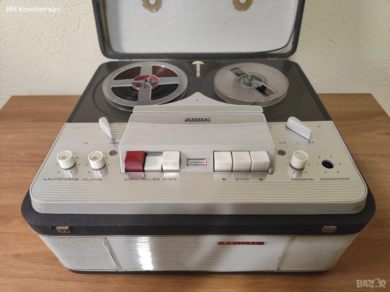 Един от първите напълно транзисторни Philips магнетофони (по-надежден от ламповите)