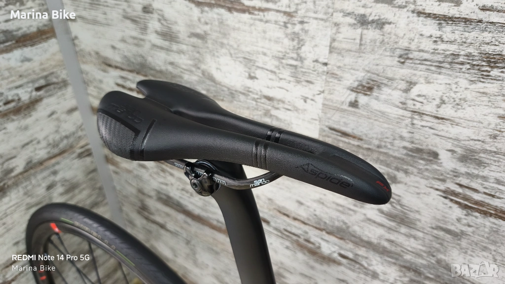 14. Седалка - Selle San Marco Aspide Carbon FX, 130 мм ширина, карбонова основа и релси, с нищожно протриване ;