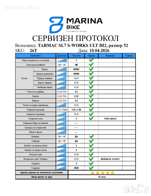 Велосипедът се продава без нужда от допълнителни разходи, с пълна 6-месечна техническа гаранция, включително и за задвижващата система, доказваща липсата на скрити дефекти и износени компоненти.