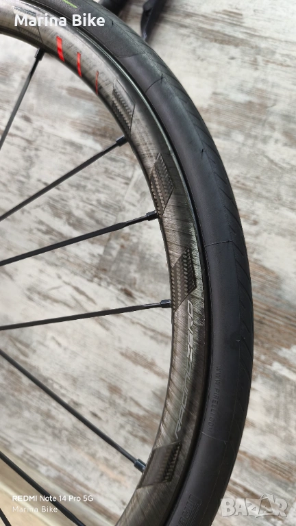15. Капли - Fulcrum Racing Zero Carbon Disc, 35 мм височина на борда, 21/21 плоски спици със G3 плетка на задната, ETRTO 622X19C, керамични Ultra Smooth Bearings лагери с конусовидни лагери, Tubeless Ready, Centerlock, тегло 1480 грама, с отличен ход ;