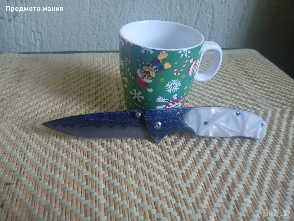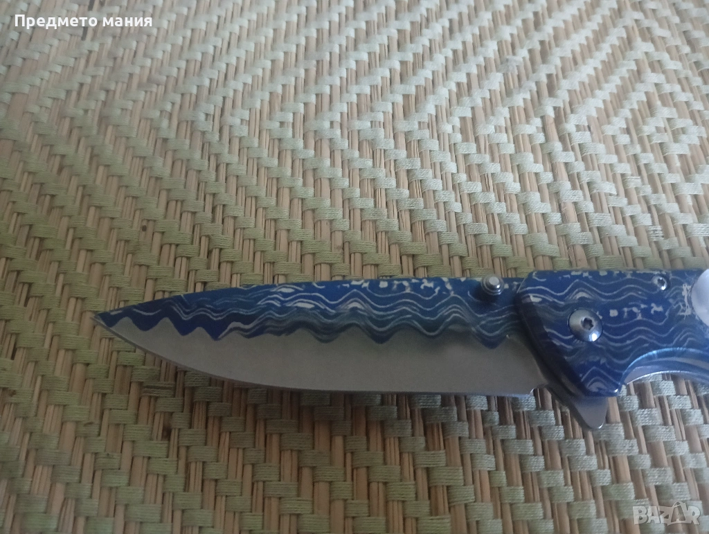 Острие: Изработено със стилни сини вълни, които му придават уникален характер.