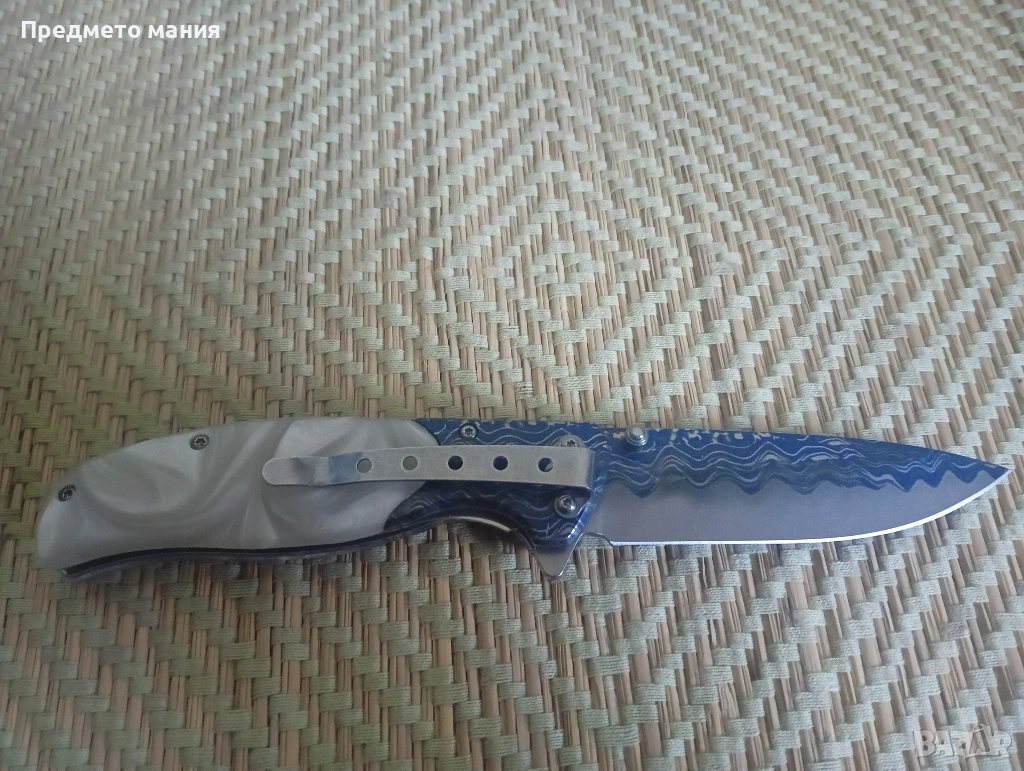 Екстри: Снабден с клипс за удобно носене на колан или джоб. Снимките са реални и показват детайлното състояние на ножа. Доставка по Еконт с преглед и тест