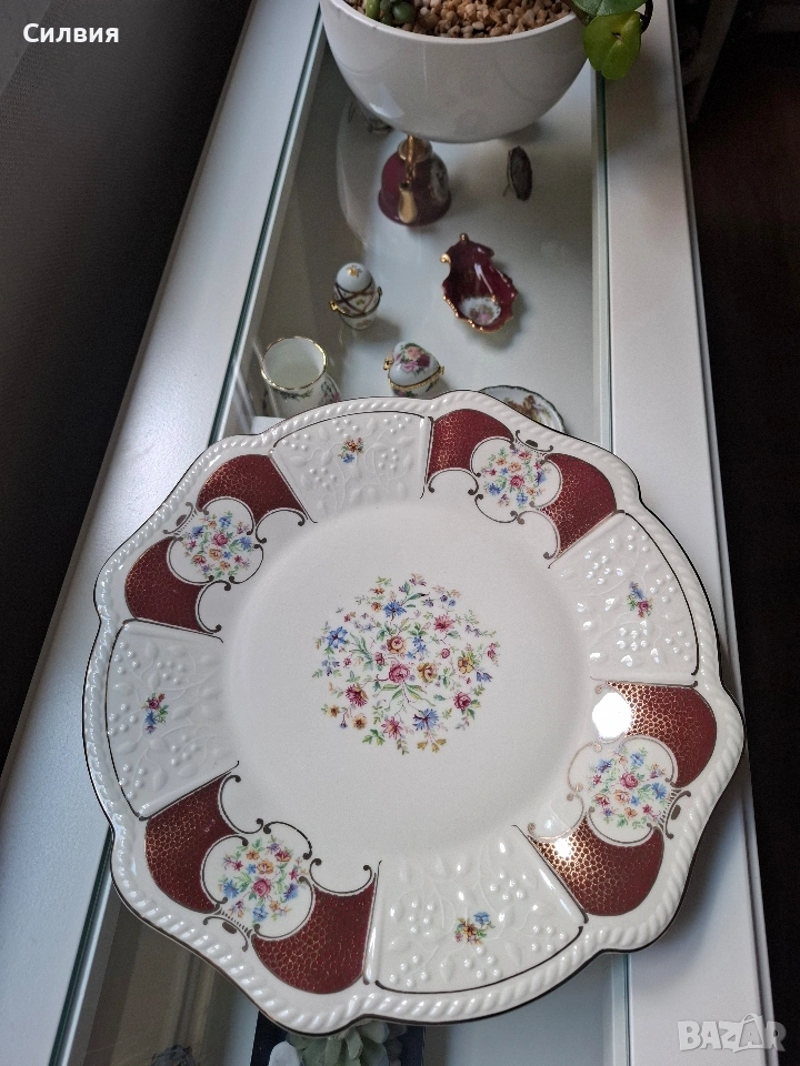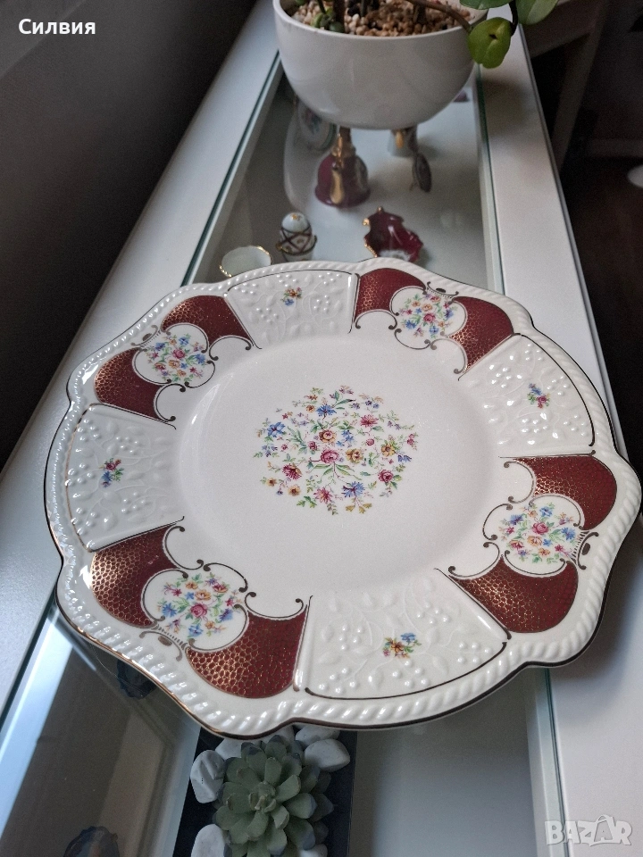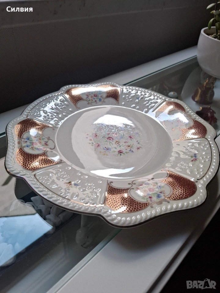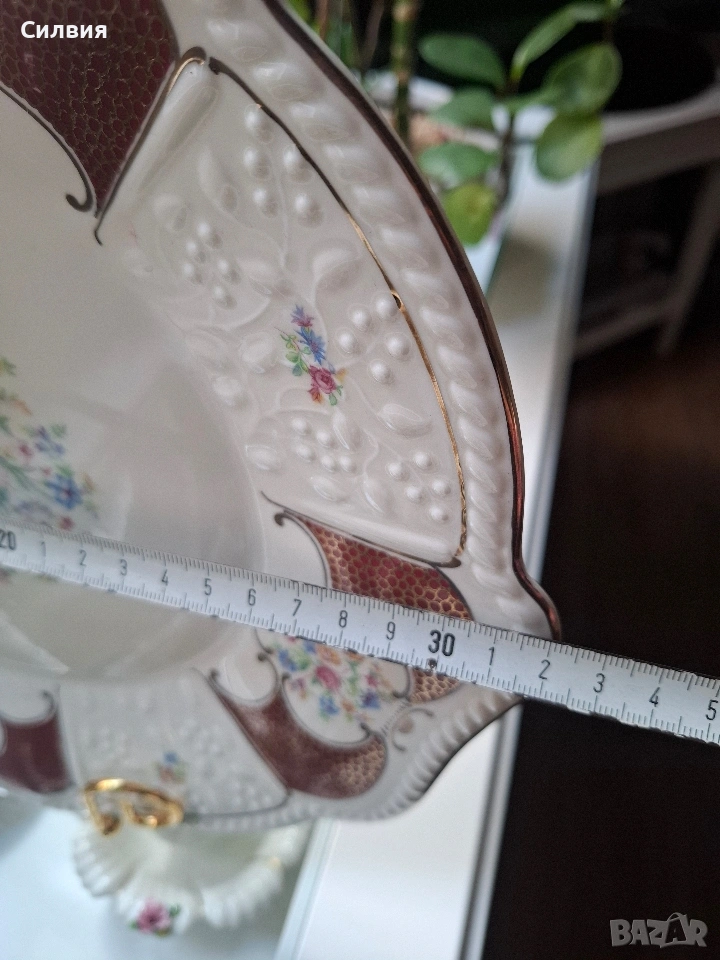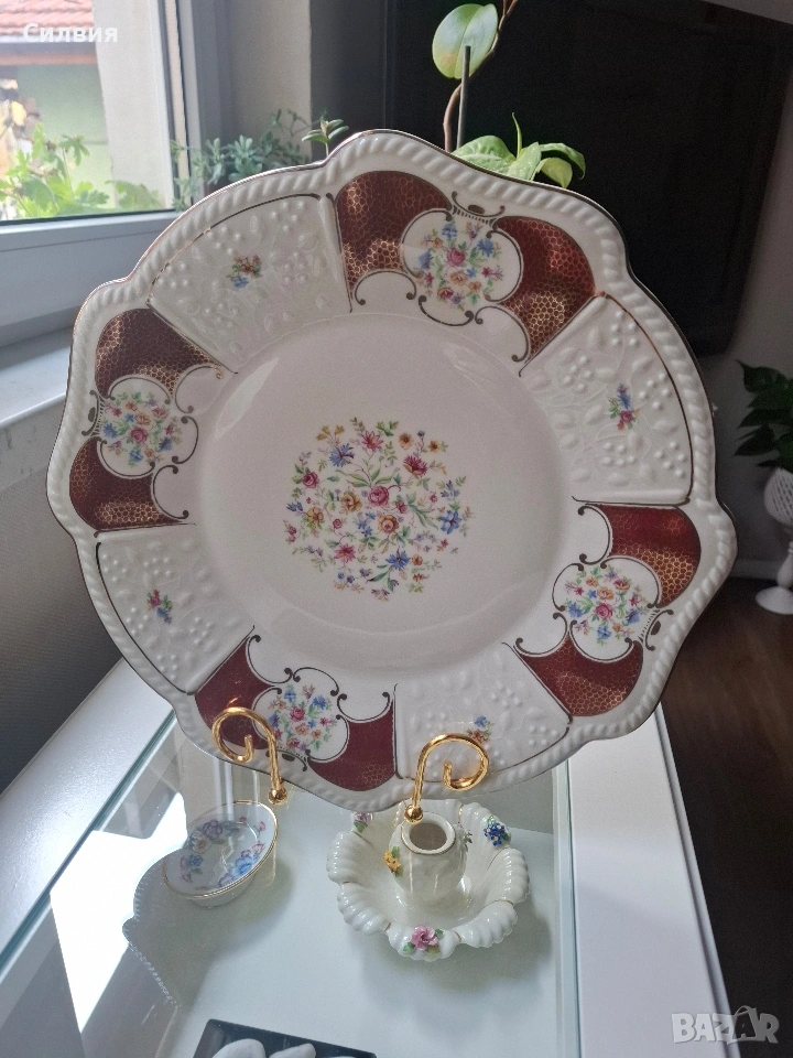 Антикварно порцеланово плато Lindner Bavaria – 32 см (ок. 1955–1965 г.)