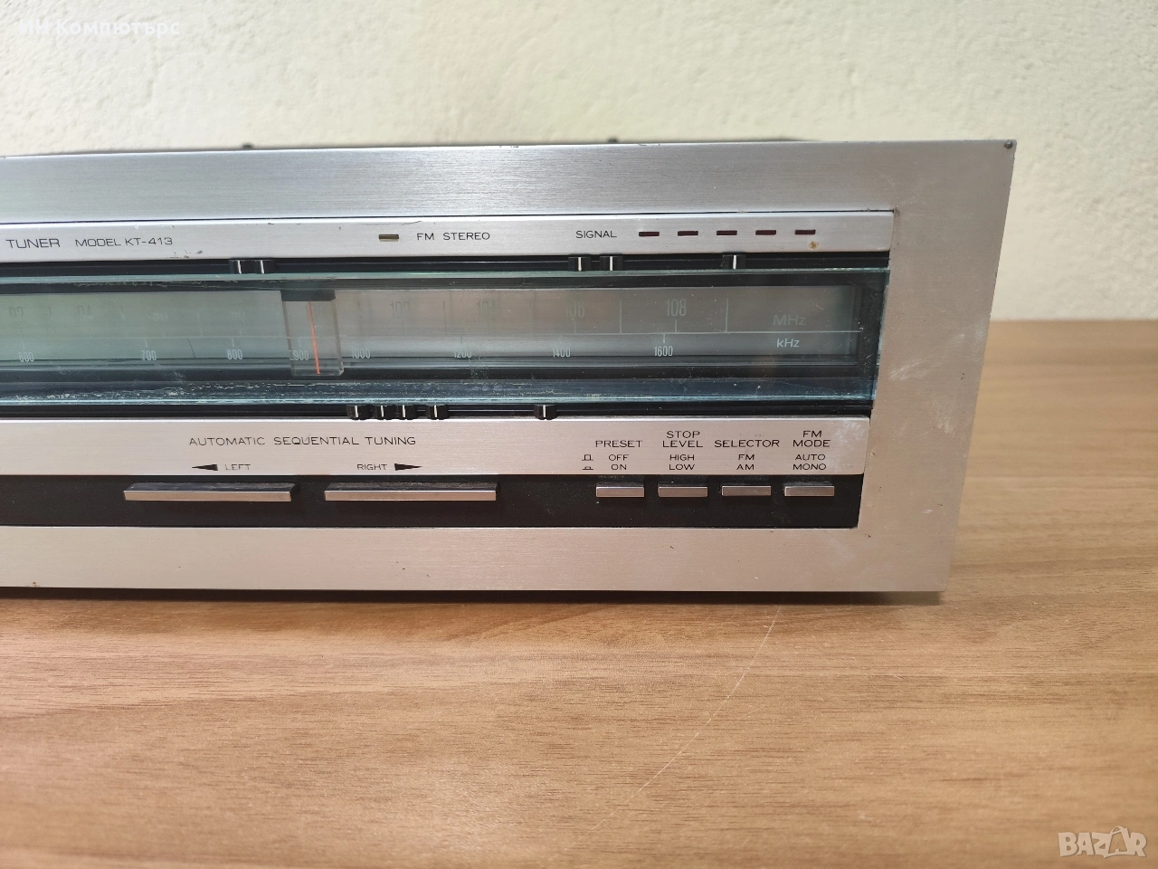 Kenwood KT-413 е класически аналогов FM/MW тунер на Kenwood от края на 70-те години – типичен представител на „silver face“ Hi-Fi ерата.