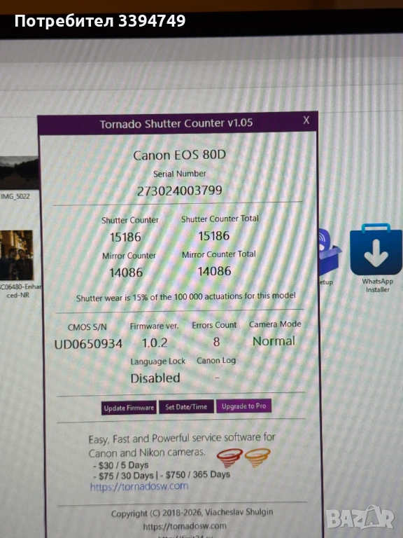 Продавам фотоапарат Canon 80D, на 15 000 кадъра. В безупречно състояние, чиста матрица и с протектори на екраните откакто е закупен. Към него има карта 64 гб, силиконов протекрор за допълнителна защита, оригинално зарядно,както и две батерии - 1 оригинанла и още една допълнителна чисто нова.