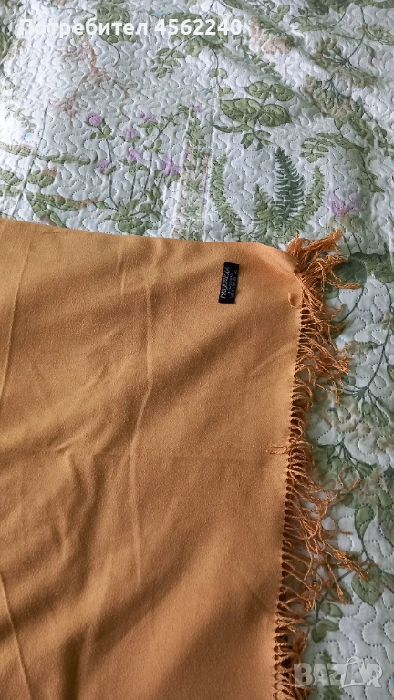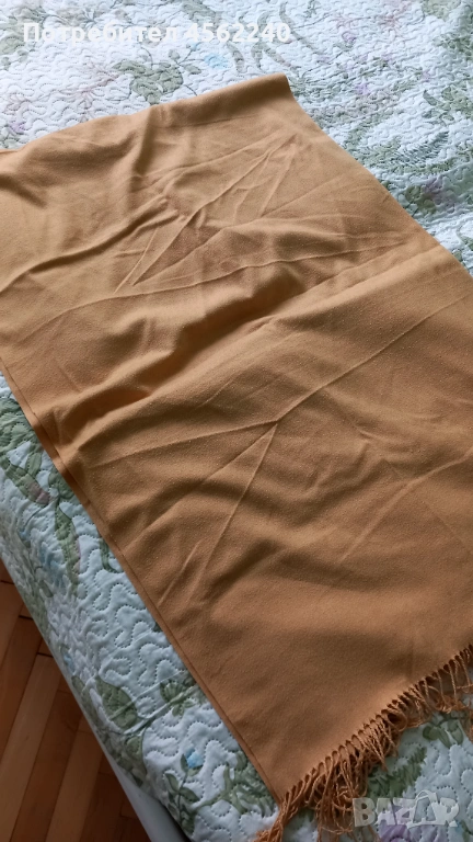 Златистожълт вълнен шал, снимка 1 - Шалове - 54159355 Златистожълт вълнен шал, снимка 2 - Шалове - 54159355 1/2