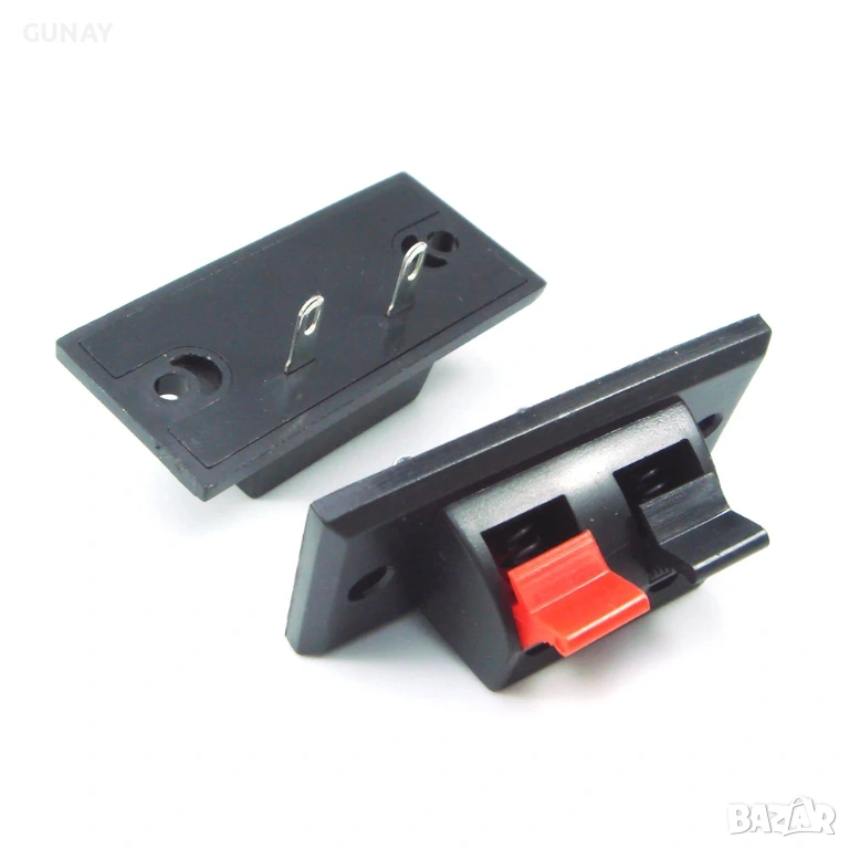 терминал за тонколони, аудио щипки, пружинен конектор, конектор за кабели, аудио аксесоари, 2 позиции терминал, аудио клеми, свързване на тонколони, щипка за аудио кабел, букси за говорители, клеморед за говорители, резервни части за колони, speaker terminal, audio connector, spring clip, hifi accessories, car audio terminal, домашно кино, усилвател за кола, ресивър, Pioneer, Sony, Kenwood, Alpine, JBL, Bose, Yamaha, Denon, Onkyo, Harman Kardon, JVC, Panasonic, Marantz, Technics, Hertz, Ground Zero, Rockford Fosgate, Focal