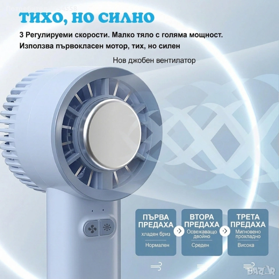 Преносим мини вентилатор 3в1 с полупроводниково охлаждане и леден компрес, 3 скорости,
