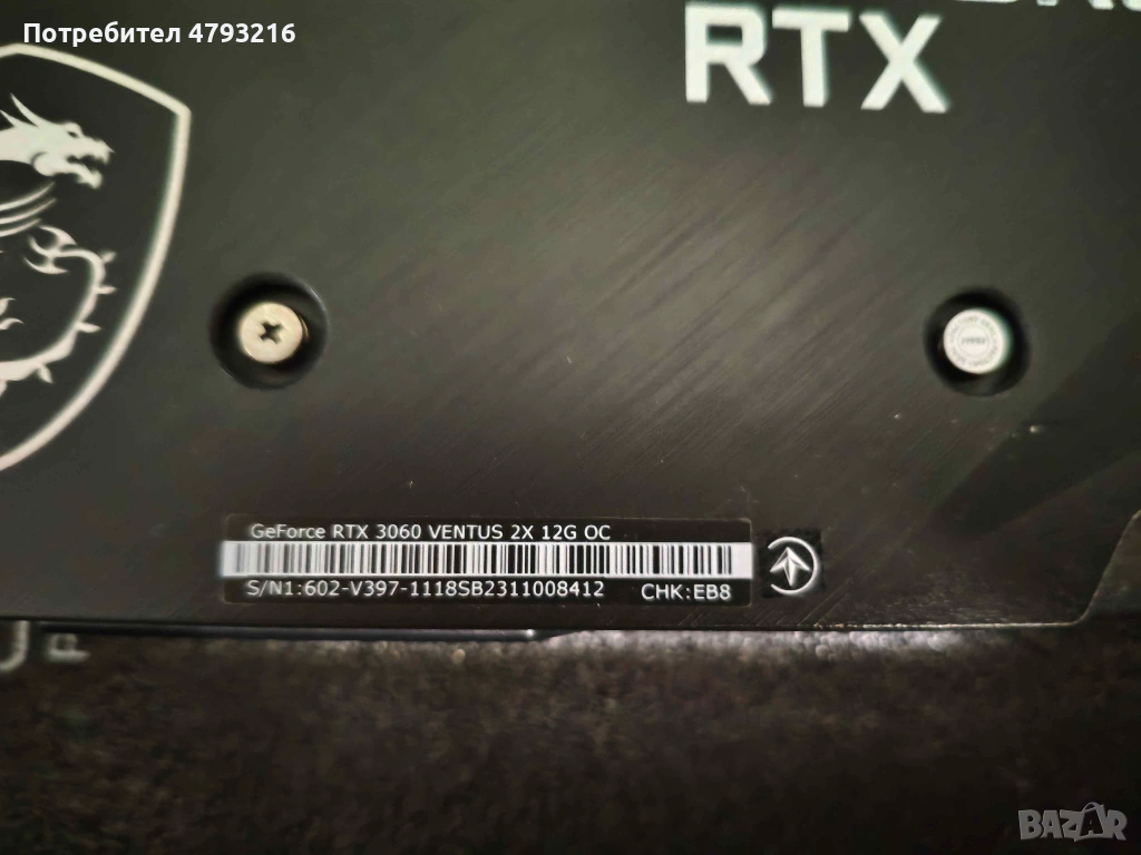 Видео карта RTX 3060 12GB OC MSI → Обява 54159373