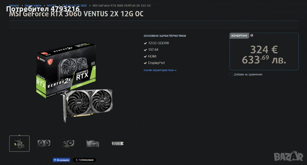 Видео карта RTX 3060 12GB OC MSI, снимка 1 - Видеокарти - 54159373 Видео карта RTX 3060 12GB OC MSI, снимка 2 - Видеокарти - 54159373 Видео карта RTX 3060 12GB OC MSI, снимка 3 - Видеокарти - 54159373 Видео карта RTX 3060 12GB OC MSI, снимка 4 - Видеокарти - 54159373 Видео карта RTX 3060 12GB OC MSI, снимка 5 - Видеокарти - 54159373 1/5