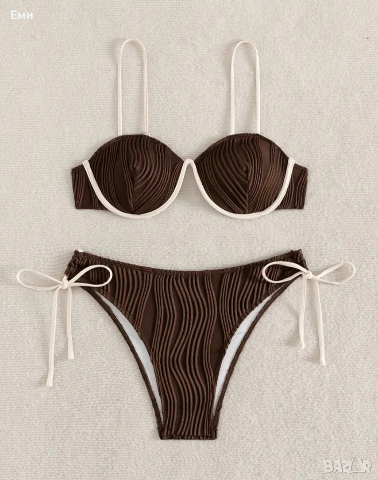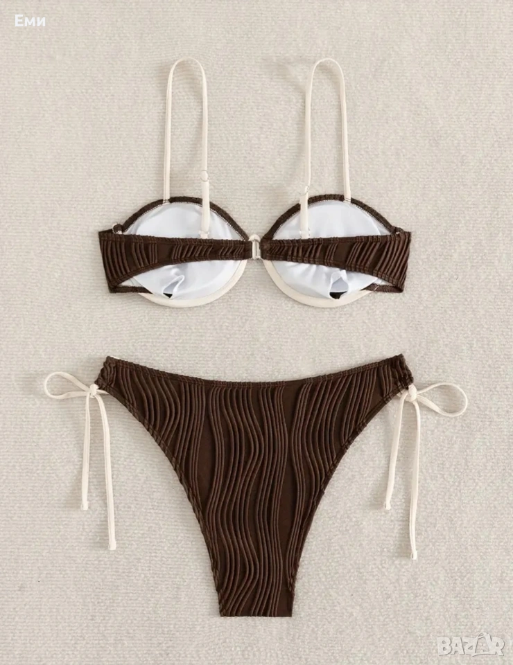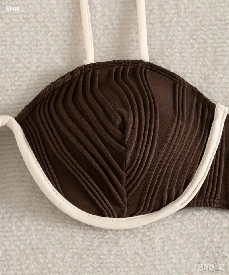 Чисто нов дамски бански от 2 части с твърди банели в цвят кафе.