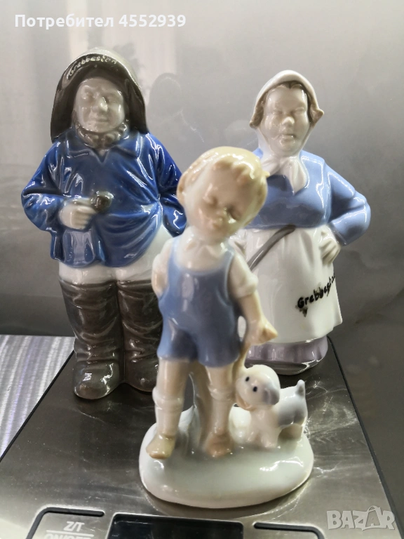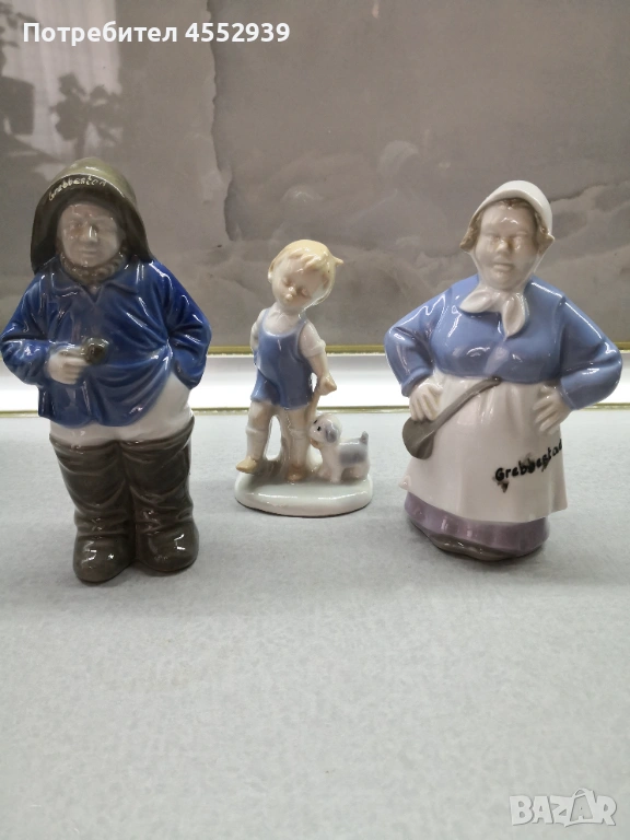 Порцеланови колекционерски фигури: рибар, мама Barn, момче с куче от Pittsburgh и буркаче за мед, по 9 € брой