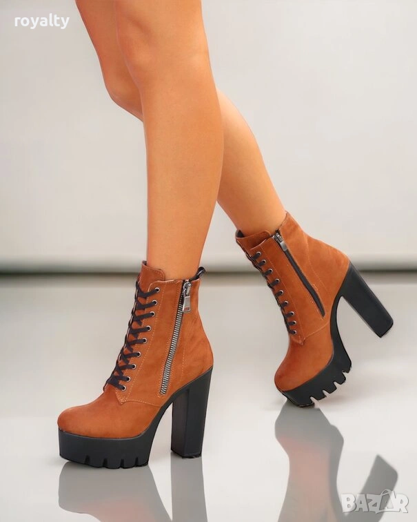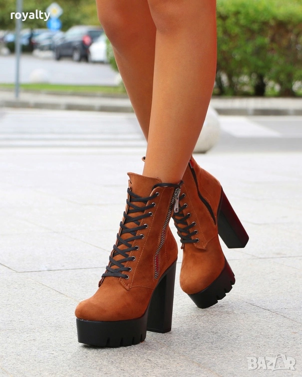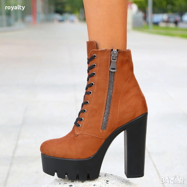 Боти на ток - кафяв велур → Обява 54159602