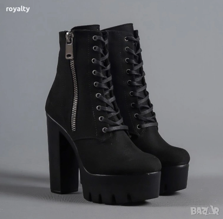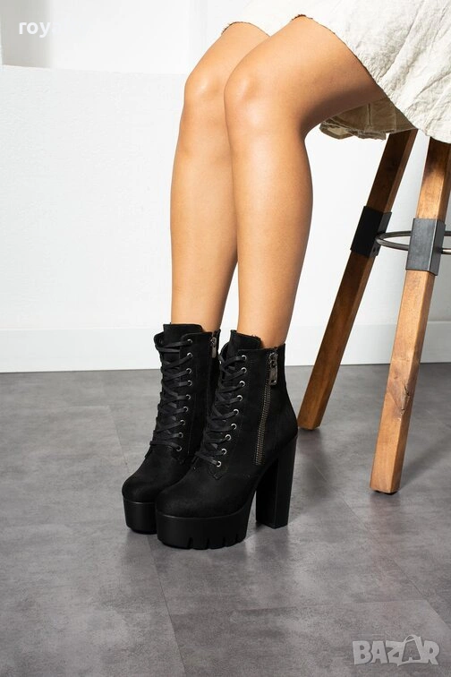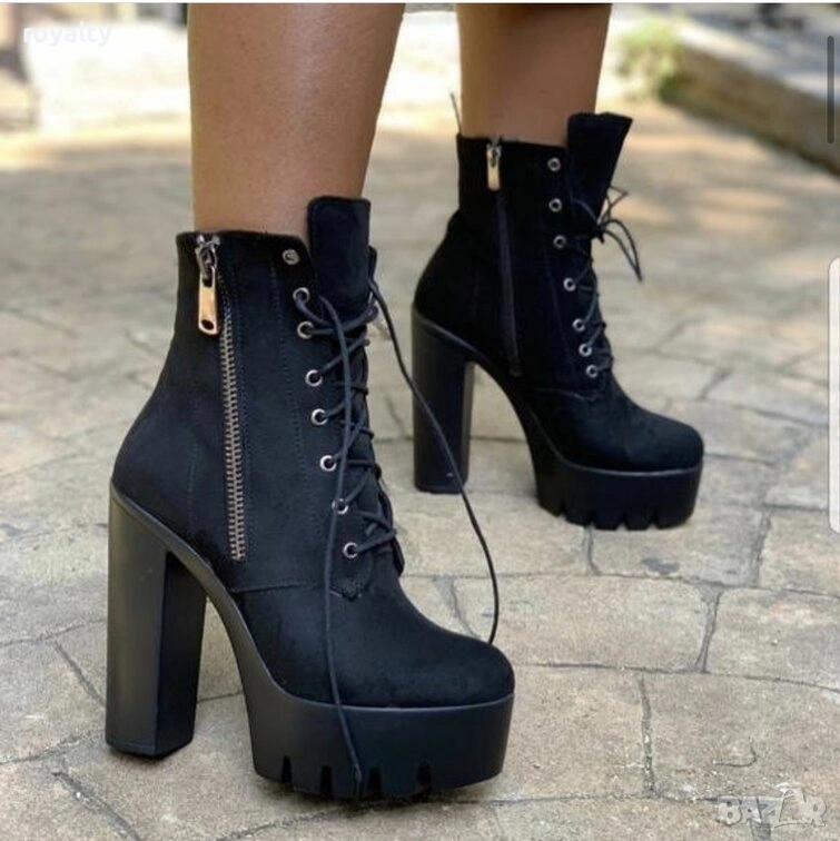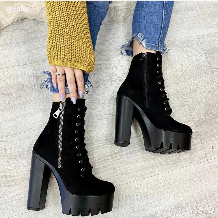 Боти на ток - черен велур с черно ходило → Обява 54159687