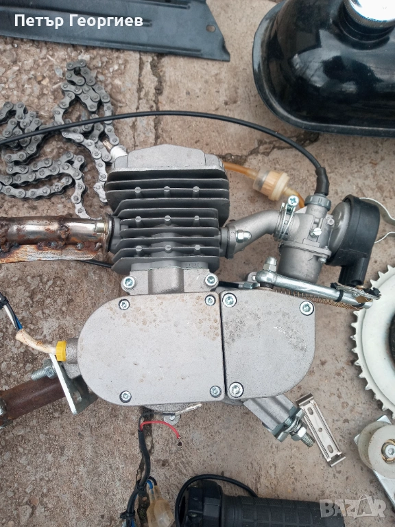 Двигател за велосипед 80 куб. см. монтиран на велосипед каран не повече от 10-15 км. и свален. Напълно комплектен и изправен. Пращам с Еконт. Може и лек коментар.