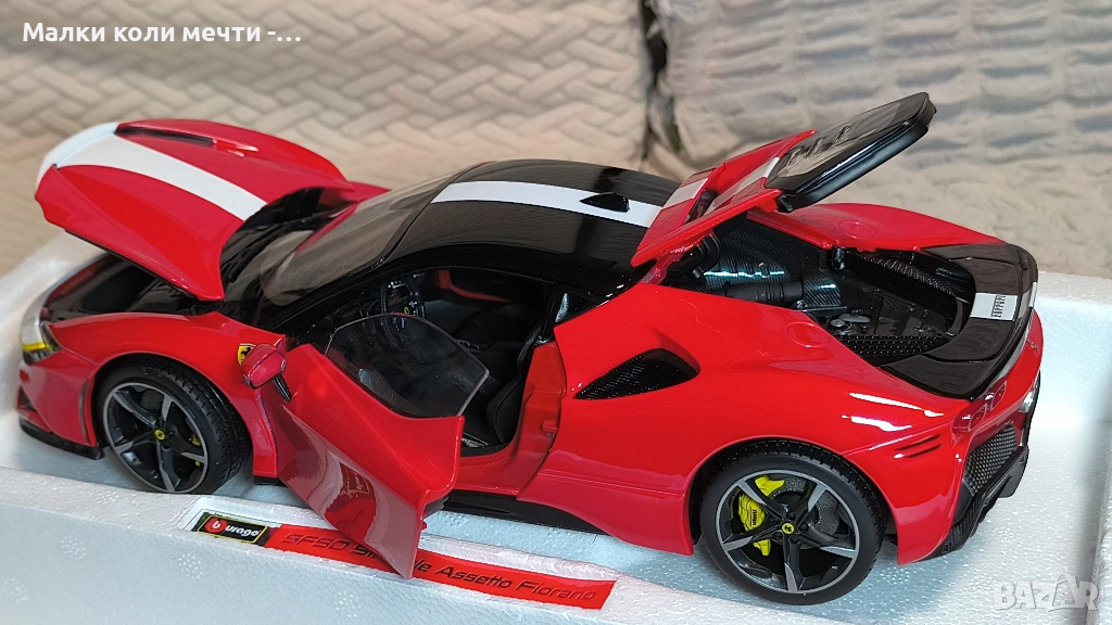 3..- Ferrari SF90 Stradale Assetto Fiorano - 2020 г. Мащаб 1:18 ( 26 см .дължина ) . Колата е чисто нова . Производител Bburago . Цена - 53 евро