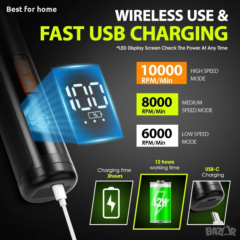 【LED дисплей】: LED дисплеят ви помага да следите нивото на батерията и настройката на скоростта, което ви освобождава от безпокойство за захранването.