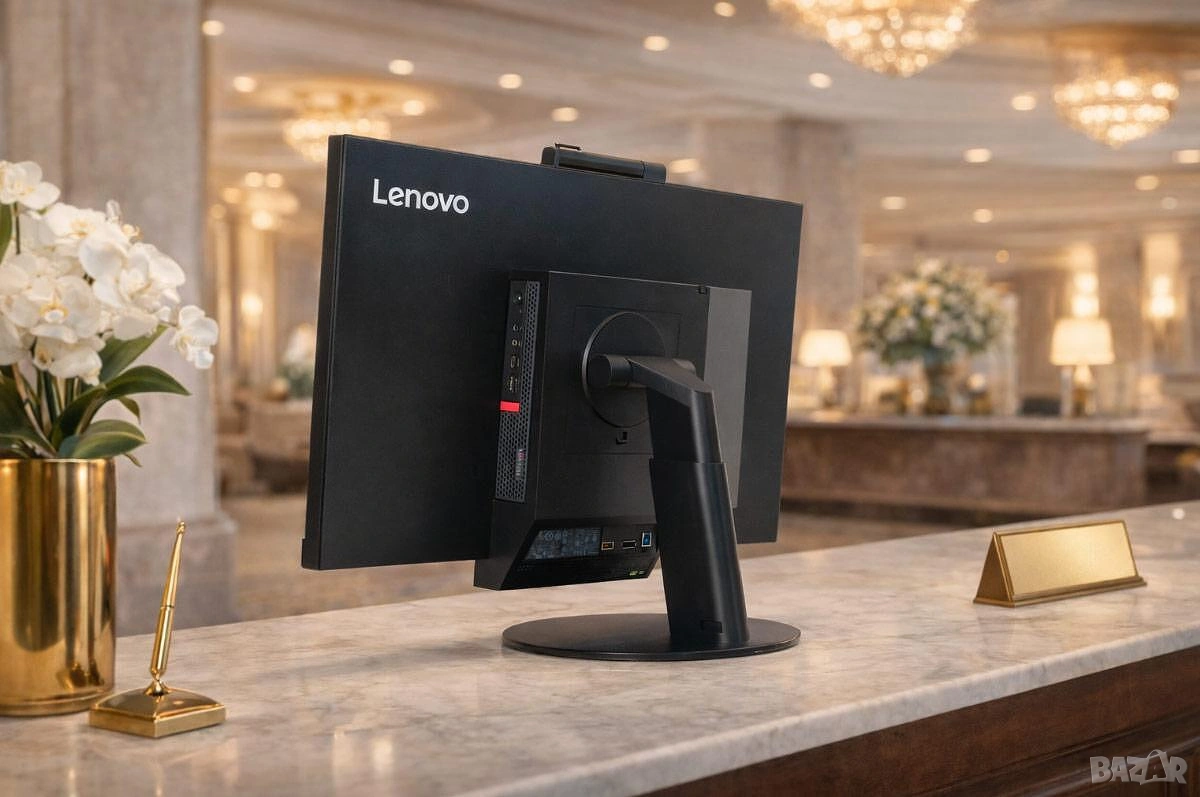 • Изчистено работно място: Благодарение на Tiny-in-One технологията, компютърът и мониторът използват един общ захранващ кабел.
