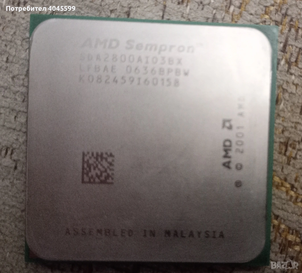 Продавам работещ едноядрен процесор AMD Sempron 2800+ със сокет 754. Моделът е SDA2800AI03BX, ядро Palermo.