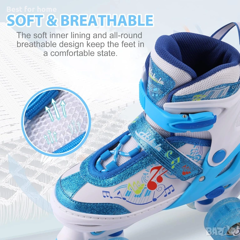 【Удобни и дишащи】 Висококачествените лагери ABEC-7 могат да подобрят стабилността на професионалните ролкови кънки за начинаещи, полиестерната мрежа е дишаща, за да се избегне запушване на краката. Подходящи за спорт на закрито и открито.