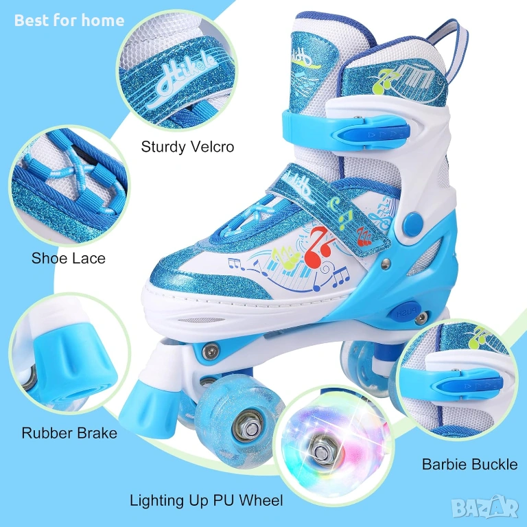 【Светящи се колела】 Ролерите Hikole за момичета и момчета имат 8 светещи PU колела и са украсени с лазерни цветове. При плъзгане те излъчват ярки цветове. Не са необходими батерии, безопасни и хладни през нощта, вашето дете е като блестяща звезда.