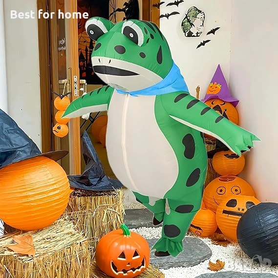 Лесни за носене надуваеми костюми на жаба, които ще ви превърнат в незабравим герой. Спрете да избирате надуваемите костюми за Хелоуин с прасе, пате, еднорог, динозавър или пиле, които виждате година след година.